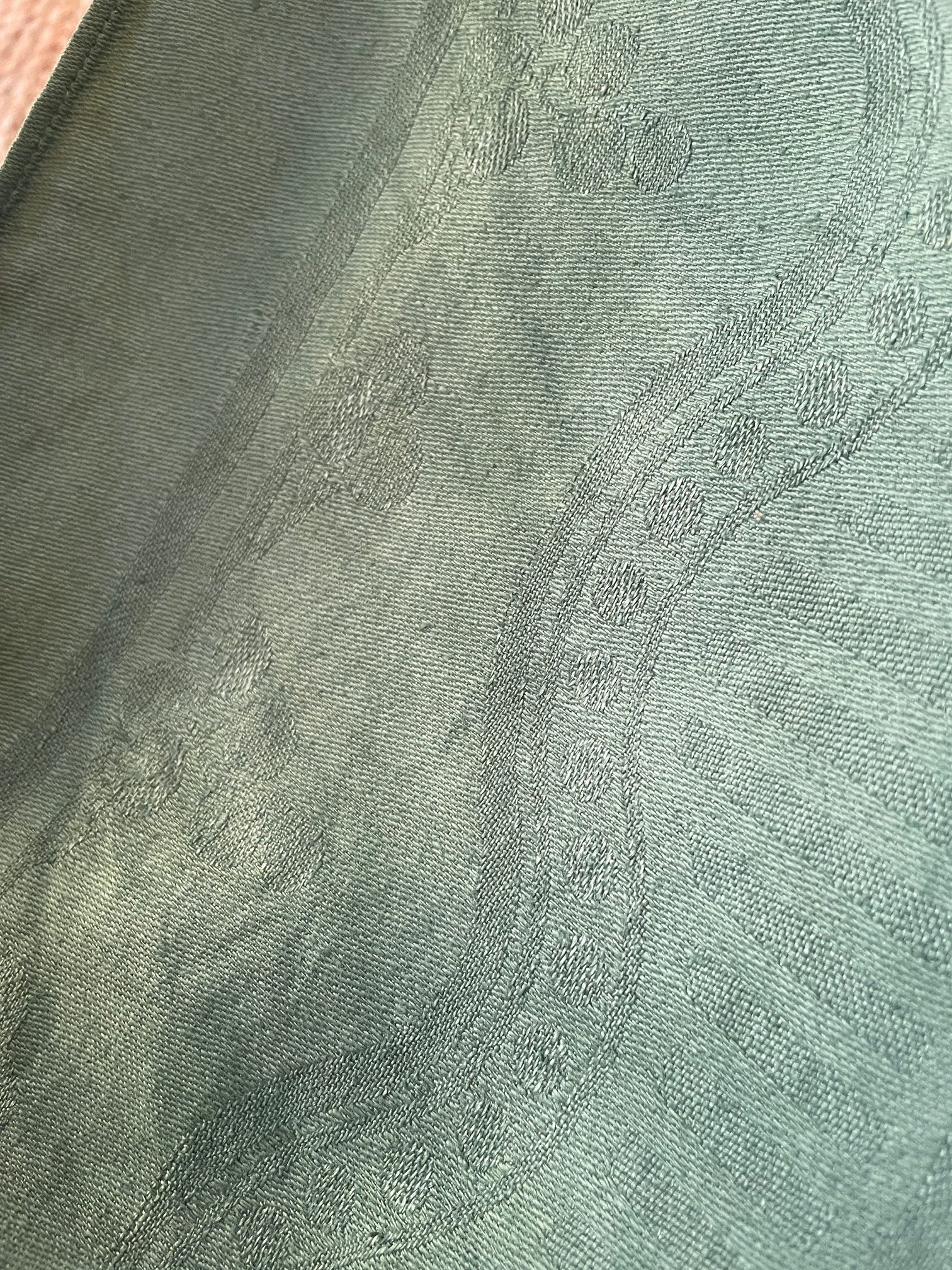 Tovaglia damascata tinta di verde con monogramma, Francia, XIX secolo